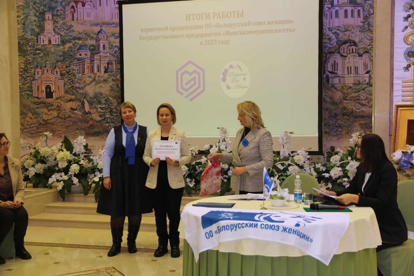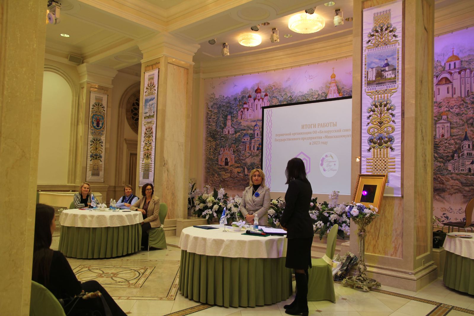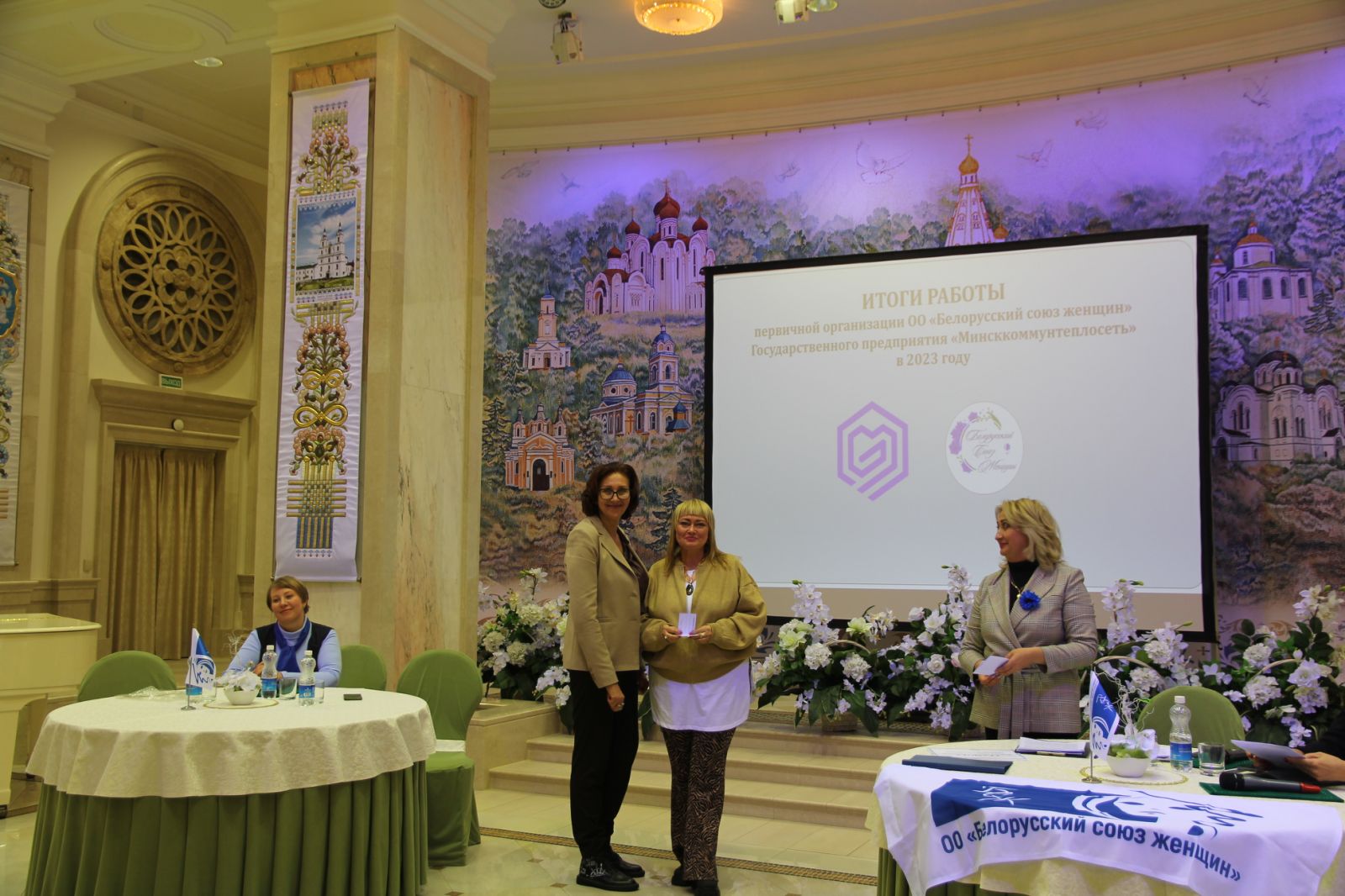 29 ноября на базе Мемориального комплекса "Храм памятник Всех Святых и в память о жертвах, спасению Отечества нашего послуживших" состоялось отчетное собрание первичной организации "БСЖ" государственного предприятия "Минсккоммунтеплосеть". Председатель первички Афанасьева Ирина Сергеевна рассказала о своей деятельности с момента вступления в должность, о тех мероприятиях и акциях которые были реализованы в 2023 году и о планах на будущий год. В торжественной обстановке вручили билеты новым членам союза женщин и наградили граммотами самых активных членов первички. Спикерами выступили: директор предприятия Рощина Наталия Николаевна, начальник отдела по информационно-общественной деятельности ГО "Минское городское жилищное хозяйство" Шмарловская Людмила Станиславовна, председатель Первомайской районной организации "БСЖ" Петруцкая Екатерина Александровна. На мероприятие была приглашена многодетная мама- Качановская Татьяна Сергеевна, ей были вручены подарки от первичной организации. И программой мероприятия была предусмотрена экскурсия по Храму.