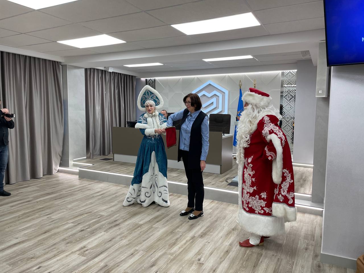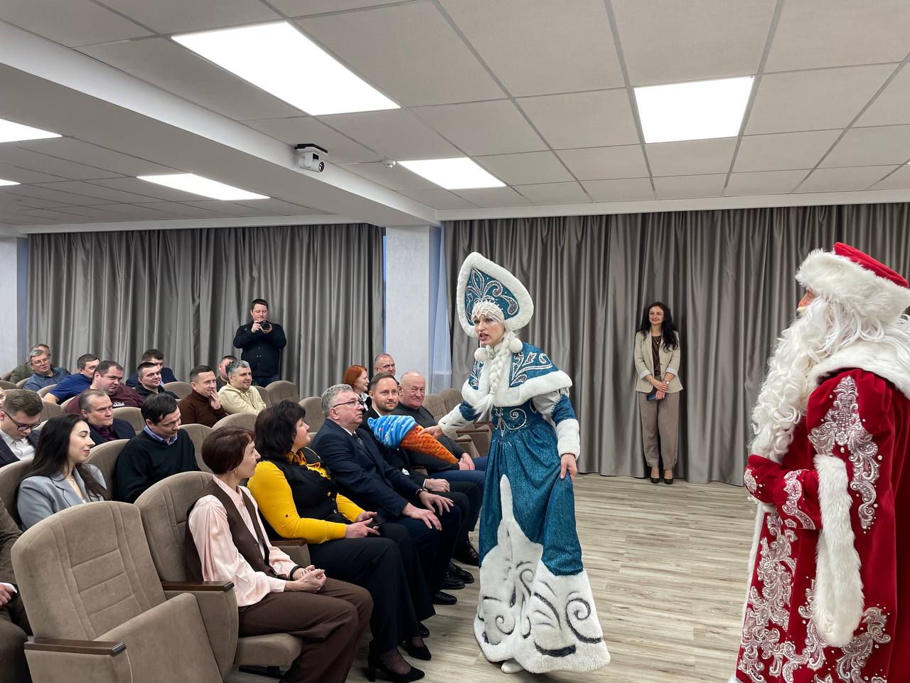 В завершении мероприятия всех присутствующих поздравил с наступающими праздниками Дед Мороз и Снегурочка.