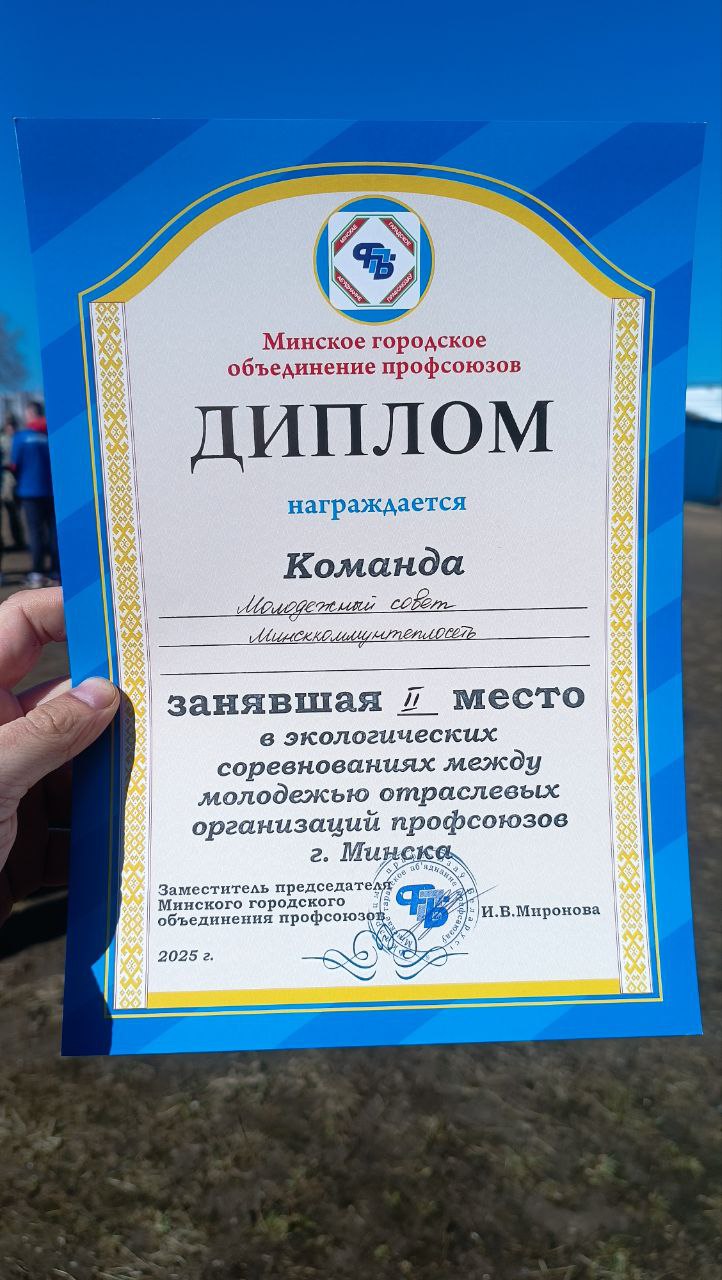 Наша команда заняла второе место в экологических соревнованиях между профсоюзной молодежью г. Минска.