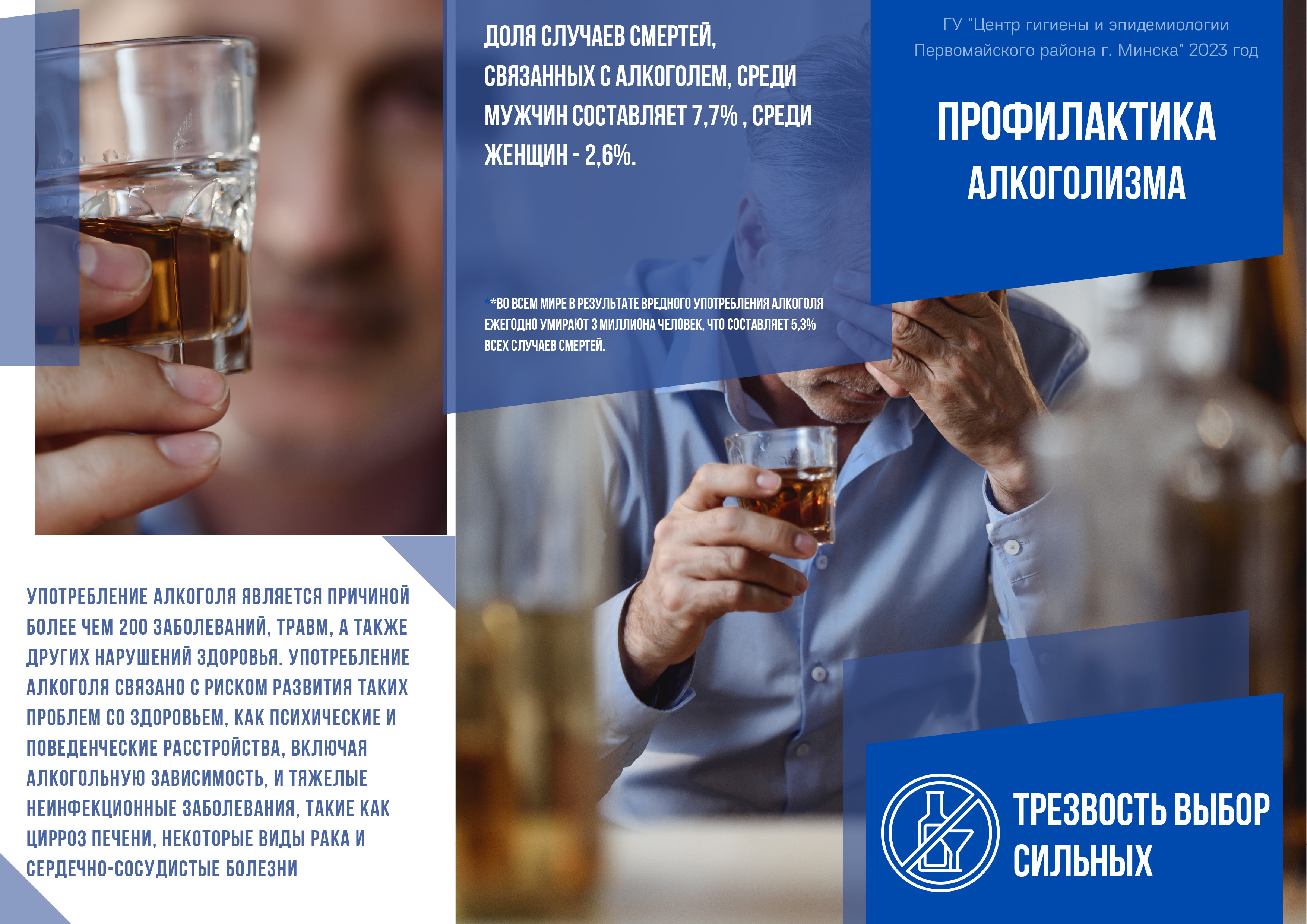 - Во всем мире в результате вредного употребления алкоголя ежегодно умирают 3 миллиона человек, что составляет 5,3% всех случаев смерти.