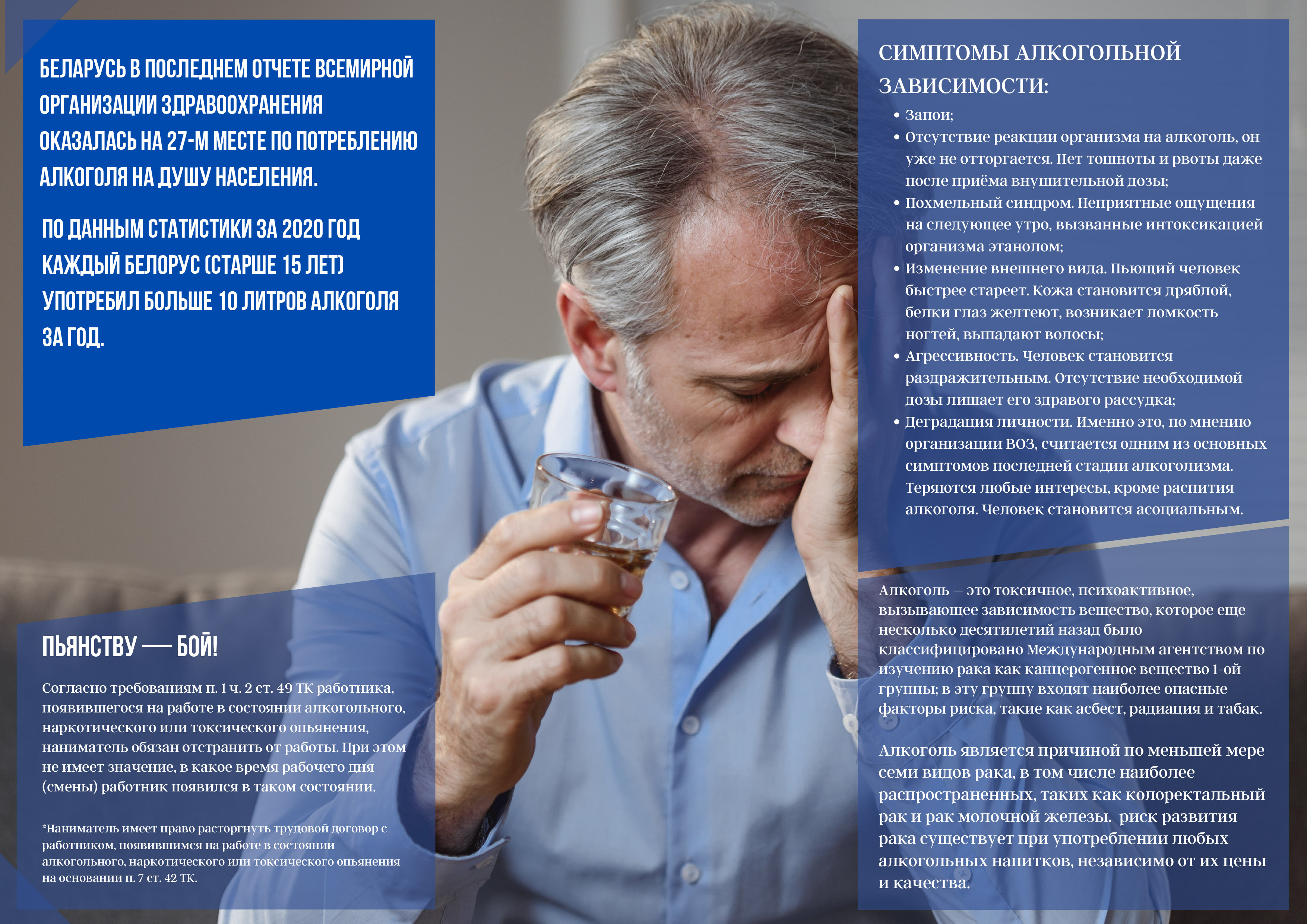 Вредное употребление алкоголя является одной из важнейших проблем общественного здравоохранения- Вредное употребление алкоголя является пятым по значимости фактором риска преждевременной смерти и инвалидности в мире. Это основная причина смерти и инвалидности в развивающихся странах с низкой смертностью, третий по значимости фактор риска после табака и кровяного давления в развитых странах и одиннадцатый — в развивающихся странах с высокими показателями смертности.