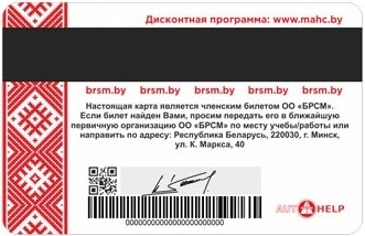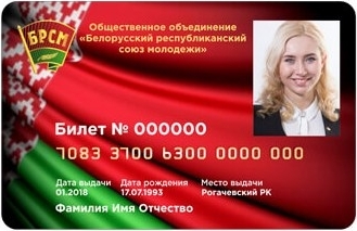 Билет члена ОО «БРСМ» лицевая сторона